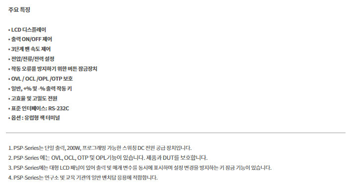 프로그래머블 스위칭 DC 전원공급기 PSP 시리즈